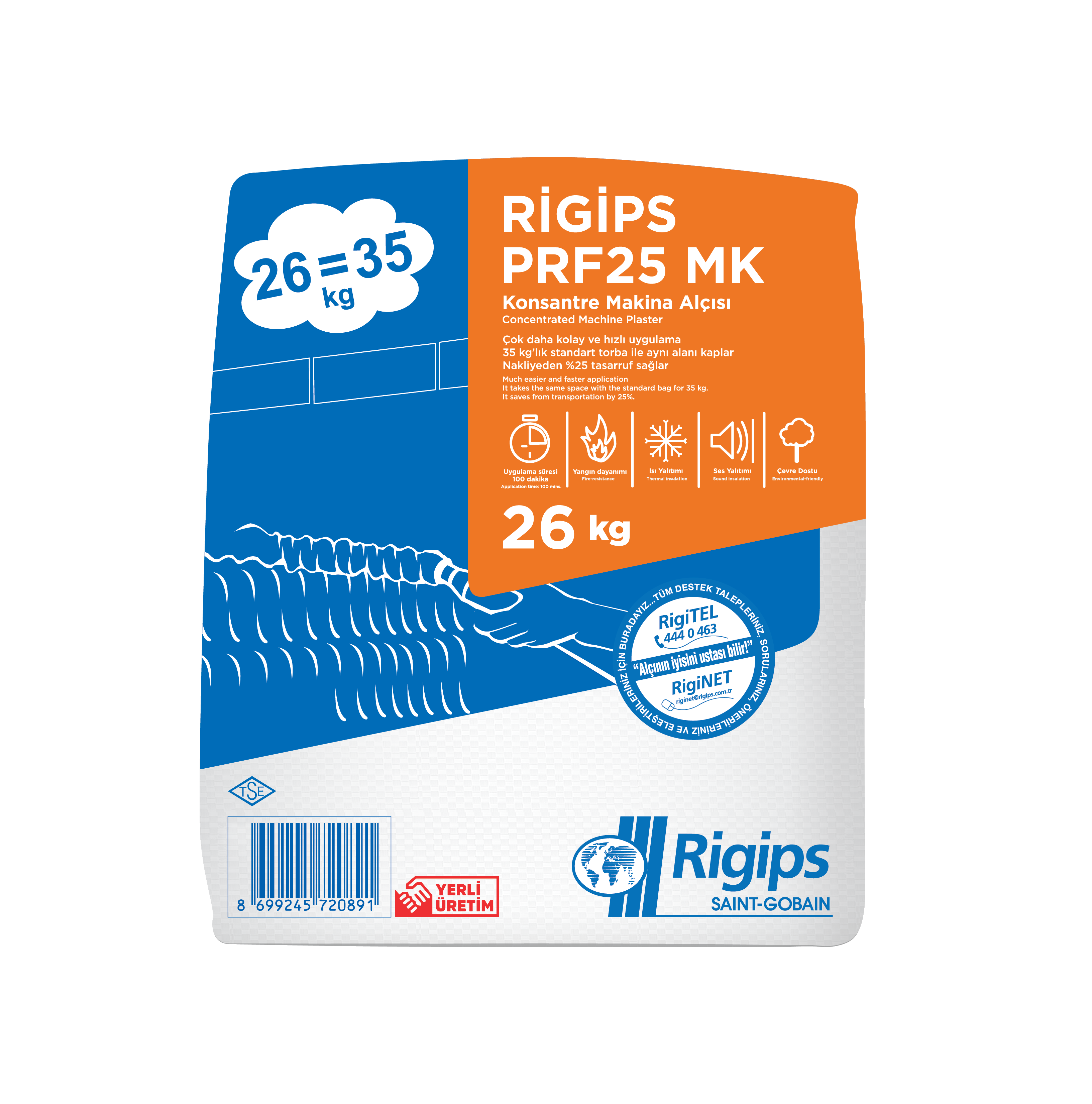 - Standart makina sıva alçısı ile aynı miktarda kullanıldığında %25 daha fazla alan kaplar.