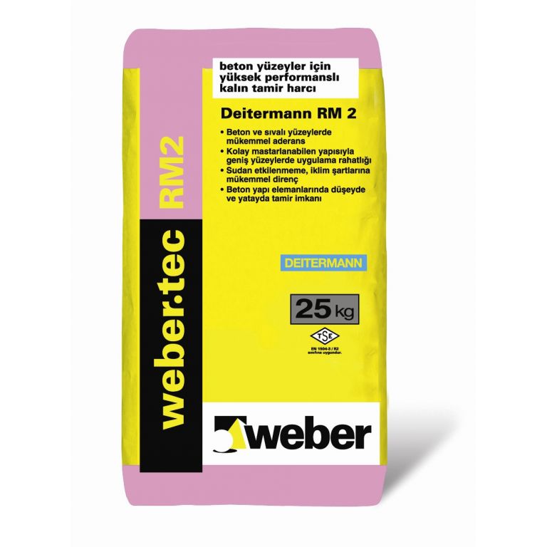Çimento esaslı, polimer modifiyeli, yüksek performansa sahip, brüt betonlar için kalın tamir harcı (R2)