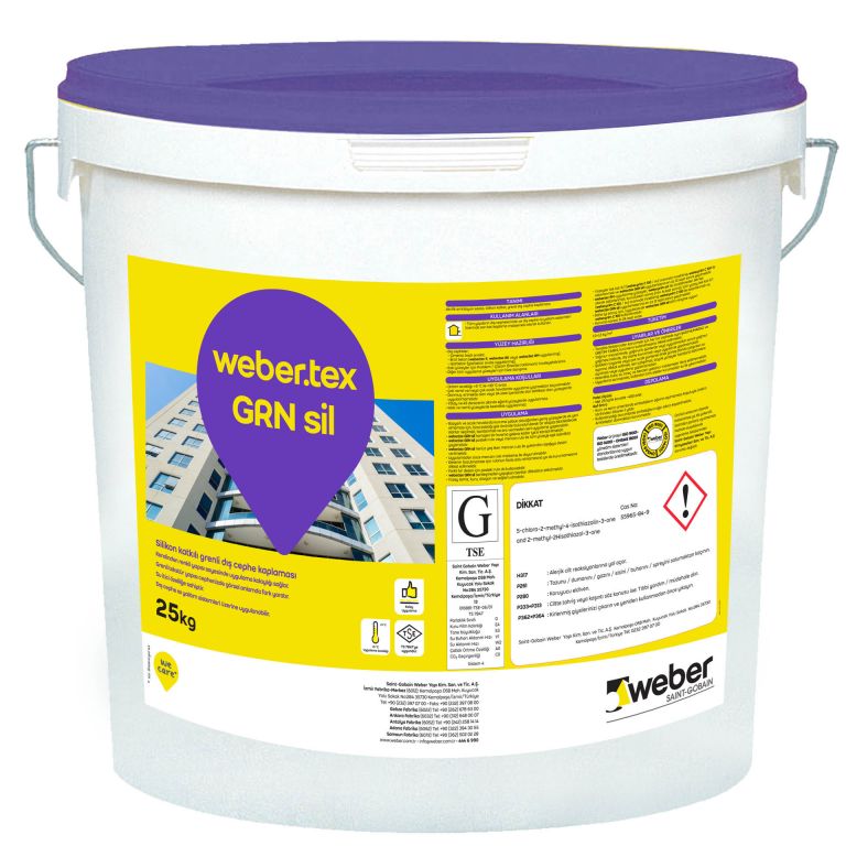 Akrilik emülsiyon esaslı, silikon katkılı, grenli dış cephe kaplaması