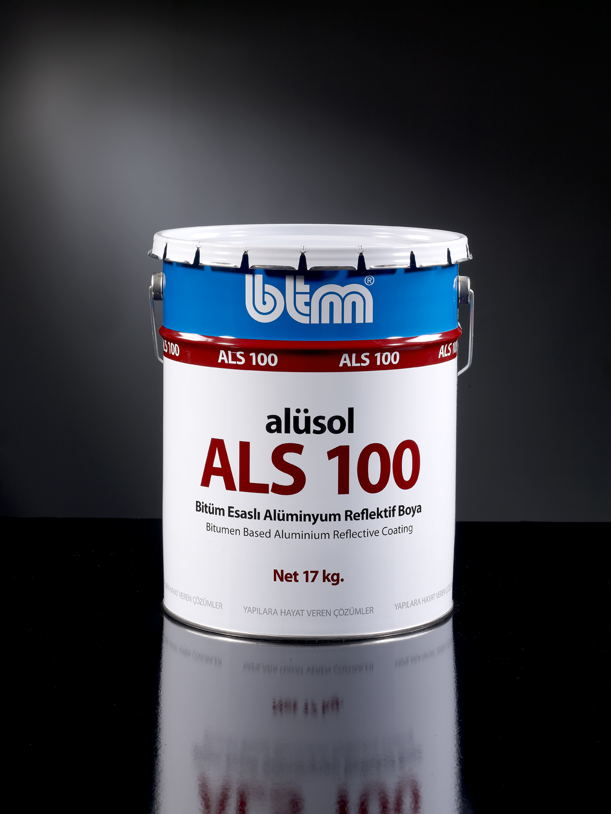 Alüsol ALS 100, reflektif alüminyum içeren bitüm-solüsyon esaslı, tek bileşenli soğuk uygulamalı su yalıtım malzemesidir.